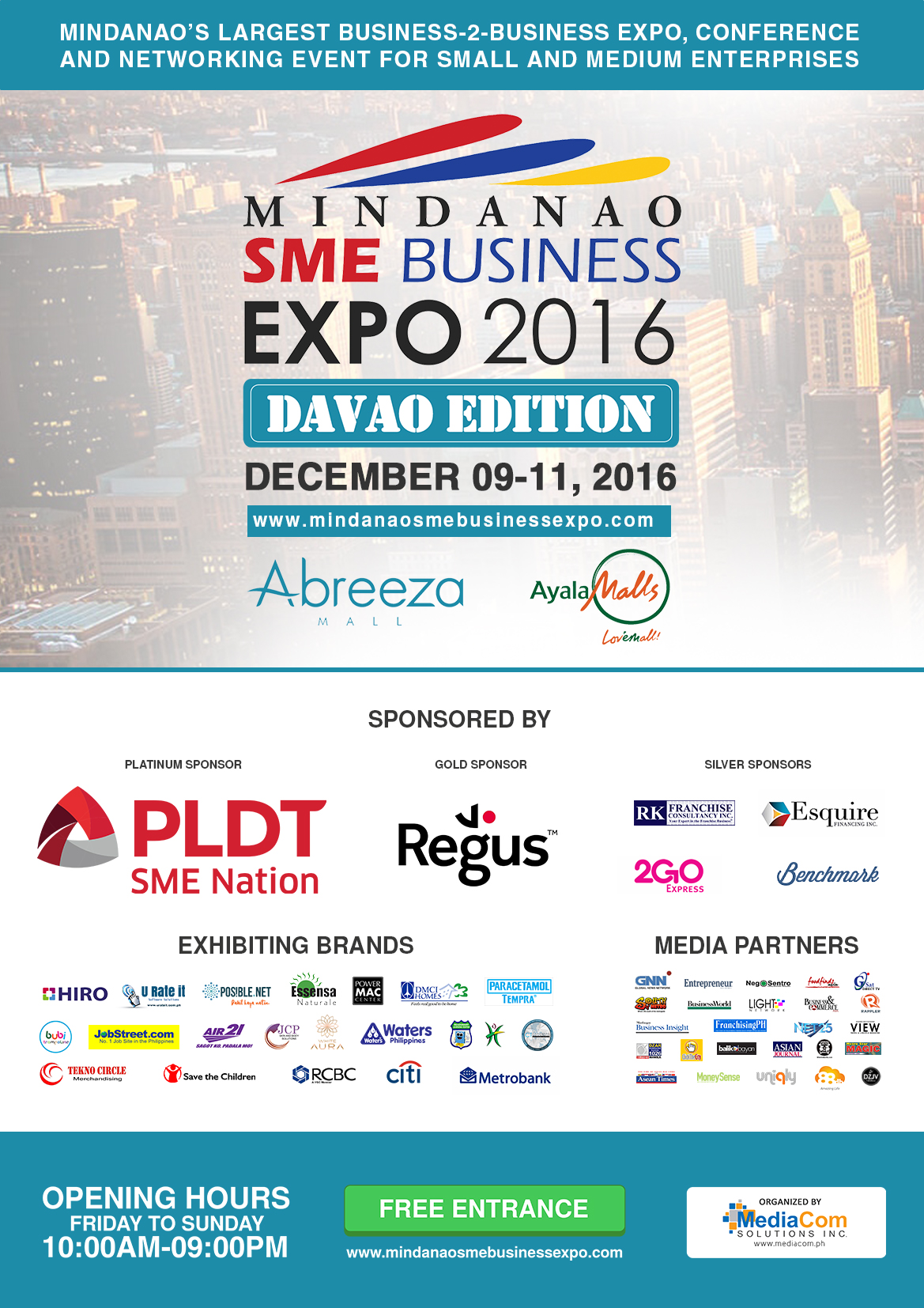 “The Mindanao SME Business Expo is an ideal venue for companies to showcase their business to SME’s in Mindanao Region, where in they can find business solutions and business opportunities for their companies and businesses. For those who want to get a franchise or become a retailer this is what? you are looking for,” said Mr. David Abrenilla, the Founder and Managing Director of Mindanao SME Business Expo and CEO of Mediacom Solutions Inc.