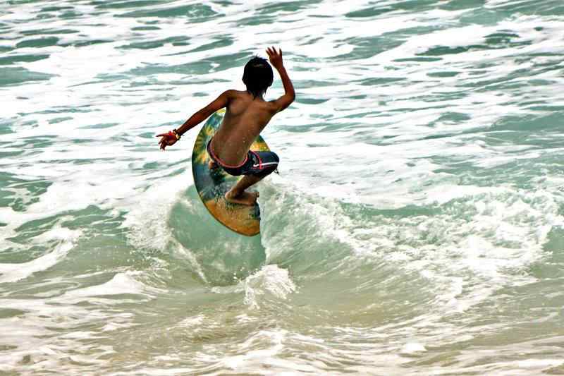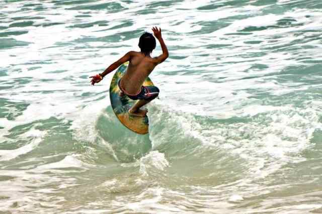Be amazed with skimboarders waiting for a wave, sprint towards it and upon reaching the wet sands, drop the board, quickly jump onto it, glide into the ocean to meet the incoming wave and then ride it back to the shore. That’s a tough one! | Photo by Ms. Leah Valle