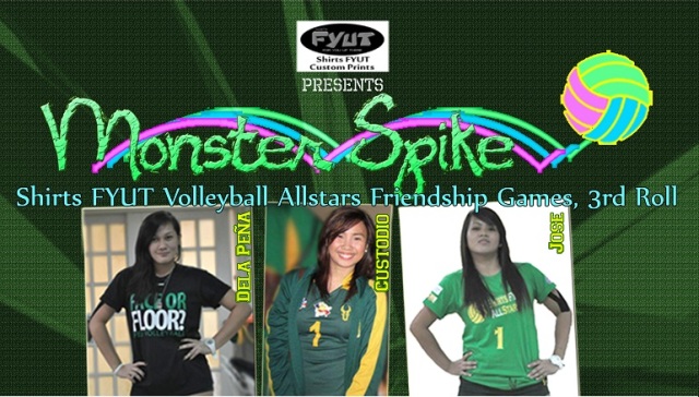 It started last February and now for its 3rd roll, Davao’s best women’s collegiate volleyball players and best alumni players from UAAP and UCAA clash in the much-awaited Monster Spike Shirts FYUT Volleyball Allstars Friendship game on November 29-30, 2012 at the Davao Doctors College Gymnasium.