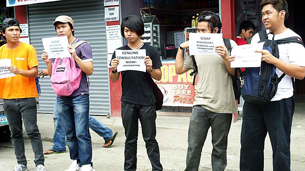Featured photo Source: (Photo on File) Student organizations led by the militant, Anakbayan in the University of Mindanao protested Wednesday (February 22, 2012).