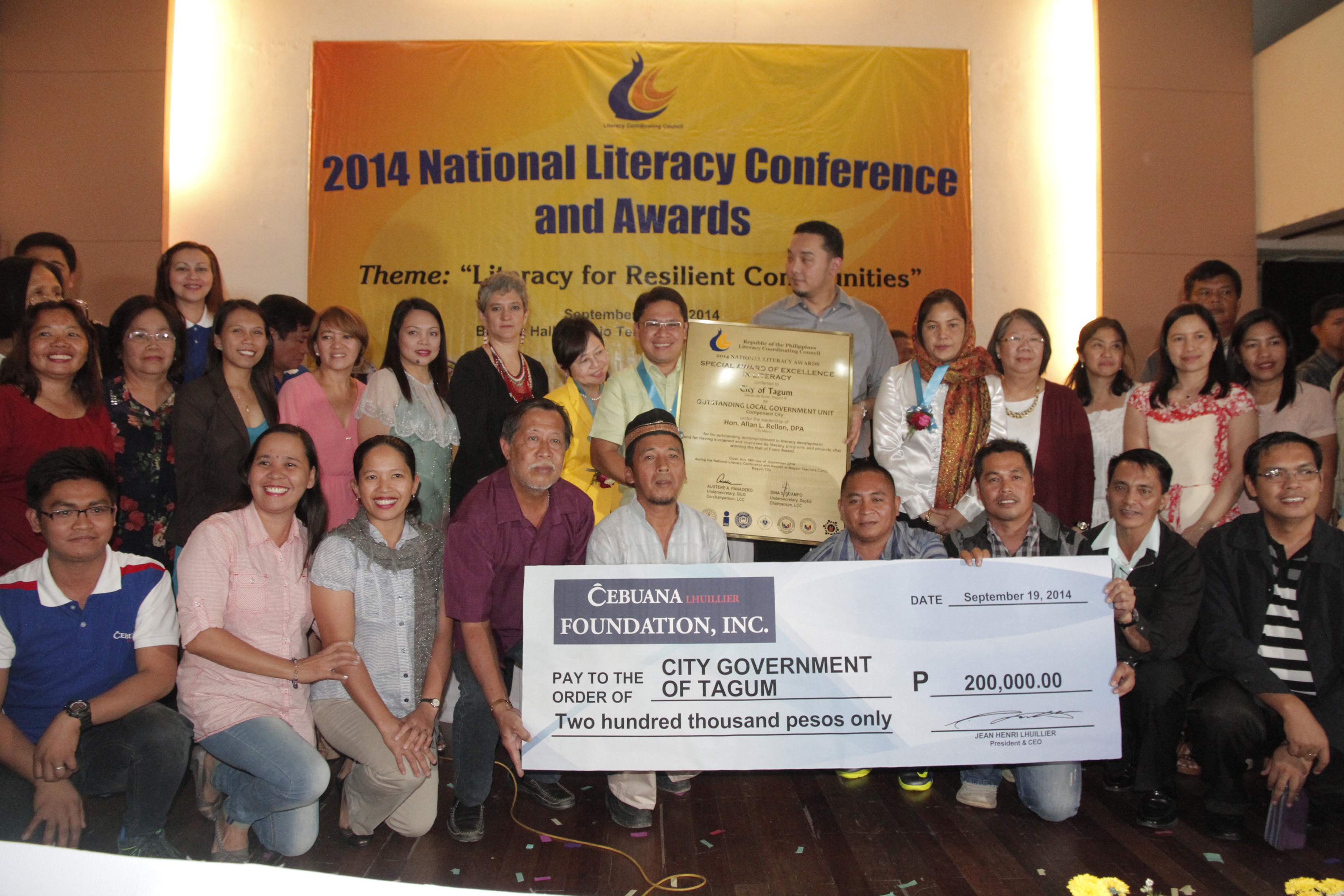 TAGUM CITY—The improvement and sustainability of this city’s literacy programs added a substantial push for the City Government of Tagum to clinch the Special Award of Excellence in Literacy which was formally accorded in a fitting ceremony in Baguio City last September 19, 2014 in time for the 2014 National Literacy Conference and Awards.