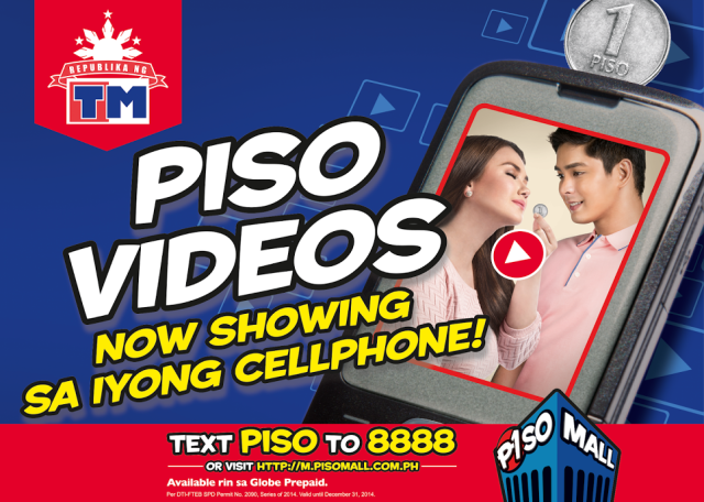 Globe and TM customers may access Piso Mall by texting PISO to 8888 or by visiting http://m.pisomall.com.ph on their mobile browser. There is no maintaining balance required to access Piso Mall and no additional data charge when browsing the videos thru the Piso store.