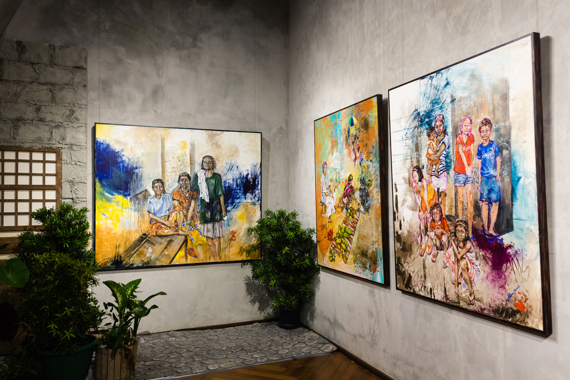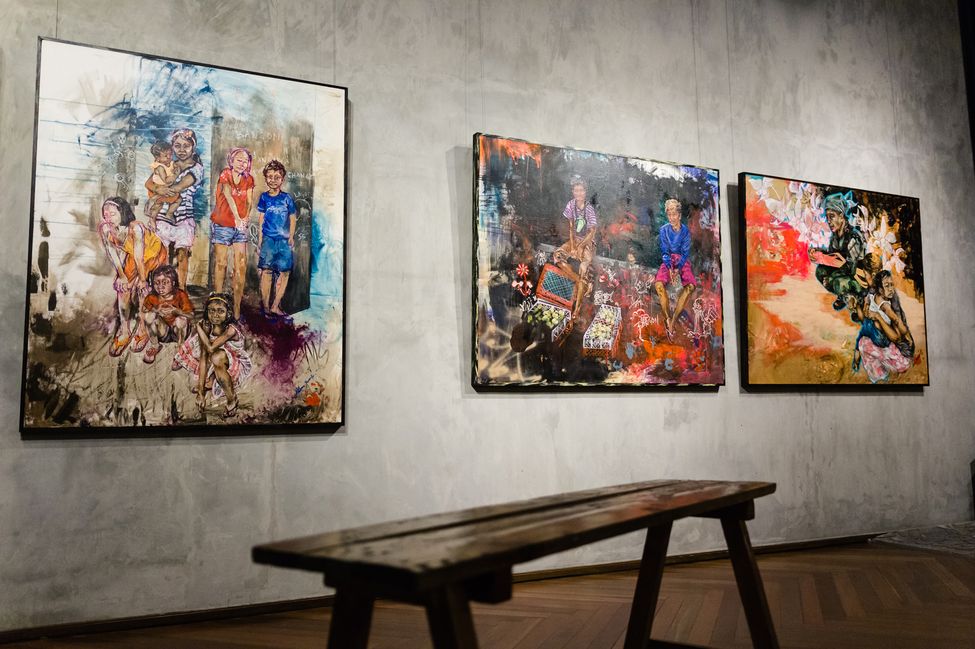 Heussaff describes the exhibit as a collaboration between her and her three-year-old nephew, Kaeden. “The subjects are based on people I’ve seen on the streets, but even if their surroundings and expressions are quite sad, the paintings are still colorful. It was Kaeden who used so much color,” explained Heussaff.