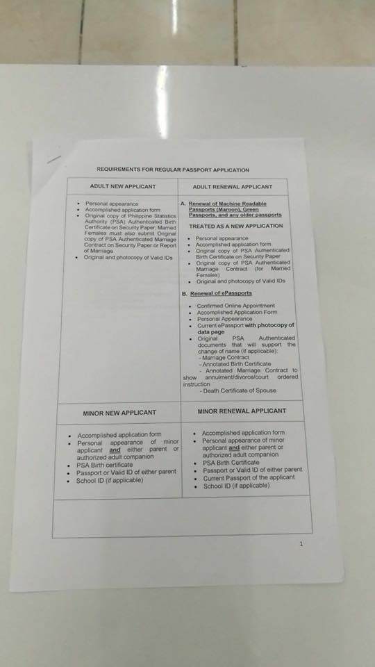 Requirements for a new passport applicant are the duly accomplished form, the original copy of the authenticated birth certificate issued by the Philippine Statistics Authority (PSA) and for females, a copy also of the marriage contract and an original photocopy of a valid identification document or ID.