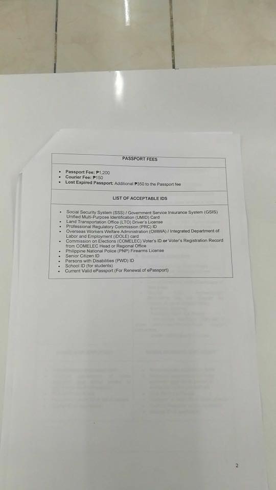 The passport fee is P1,200 and the courier fee is P150. For those who have lost or have expired passports, an additional fee of P350 shall also be required.